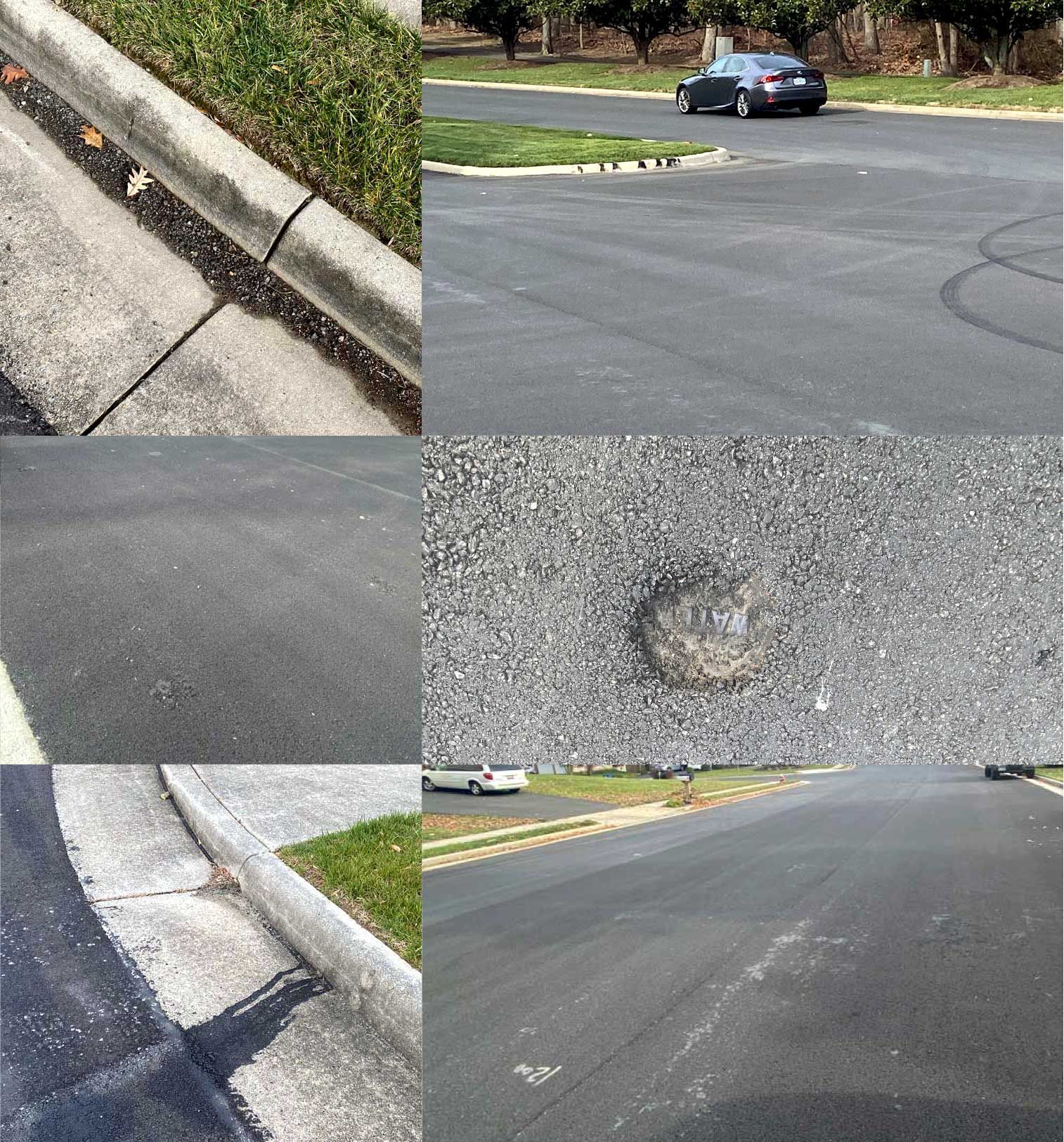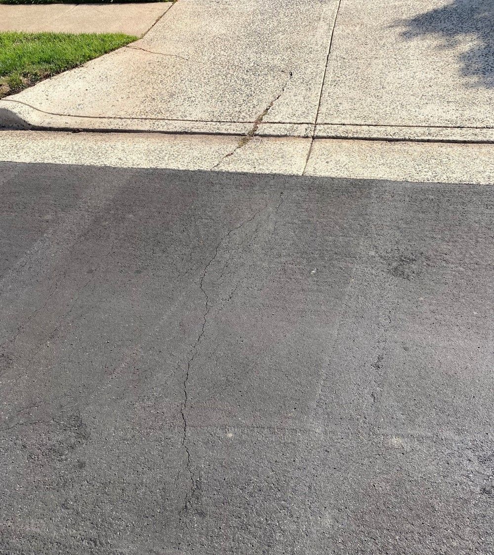 When there is discoloration in cul-de-sacs, the turning of heavy garbage trucks can leave unsightly tracks. This is a good sign as it is the discoloration normalizing. In this extreme example, the cul-de-sac looked like any other in a couple of months.